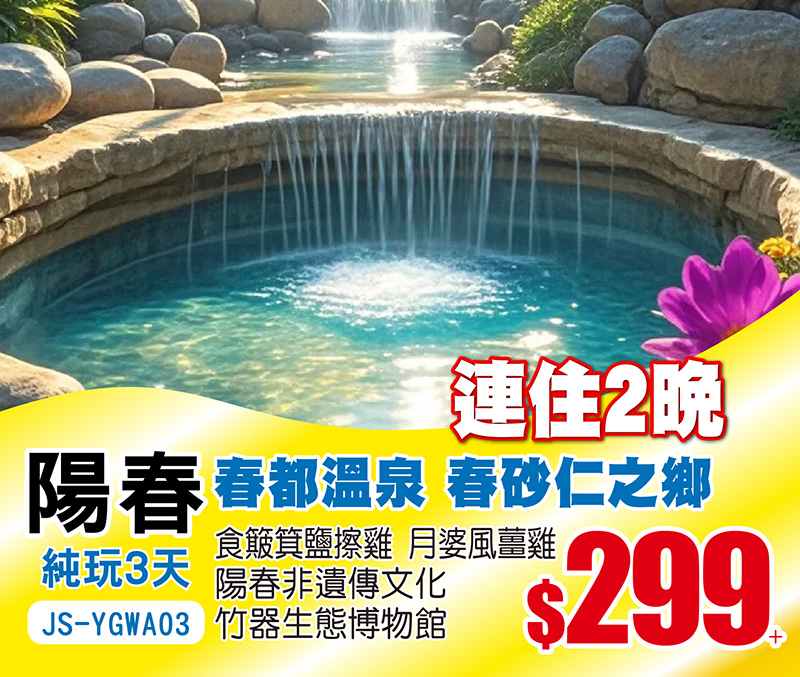 陽春春都溫泉,連住2晚,驅寒暖胃月婆風薑雞,純玩3天,$299+