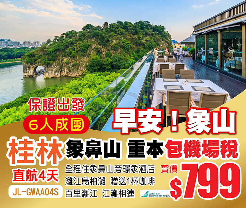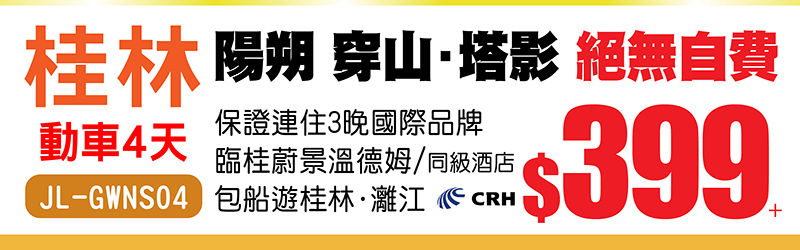 早安!象山!親身體驗桂林山水甲天下,4-5天,$399起