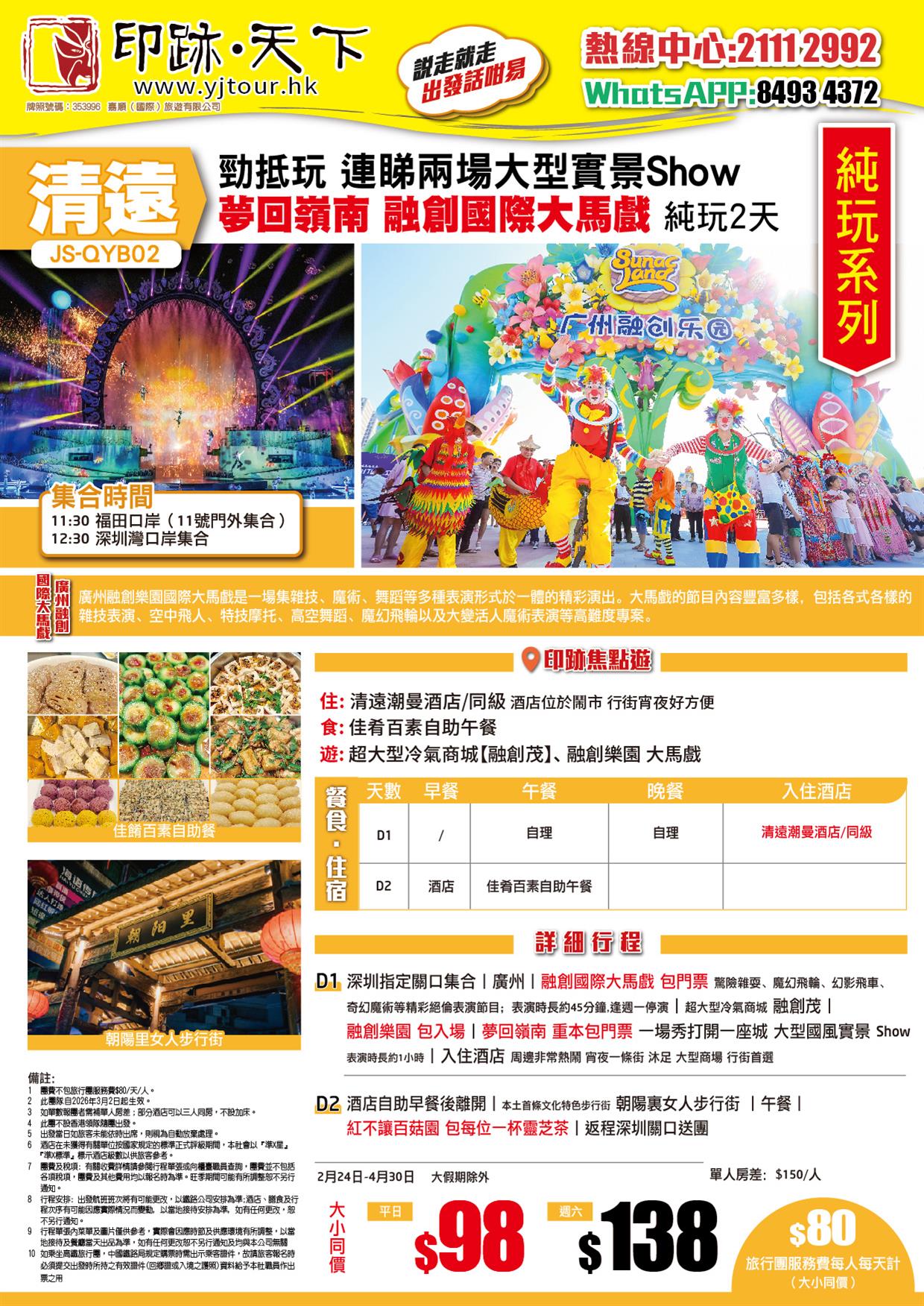 | 03月21日 | 星期六 | $98 | $98 |