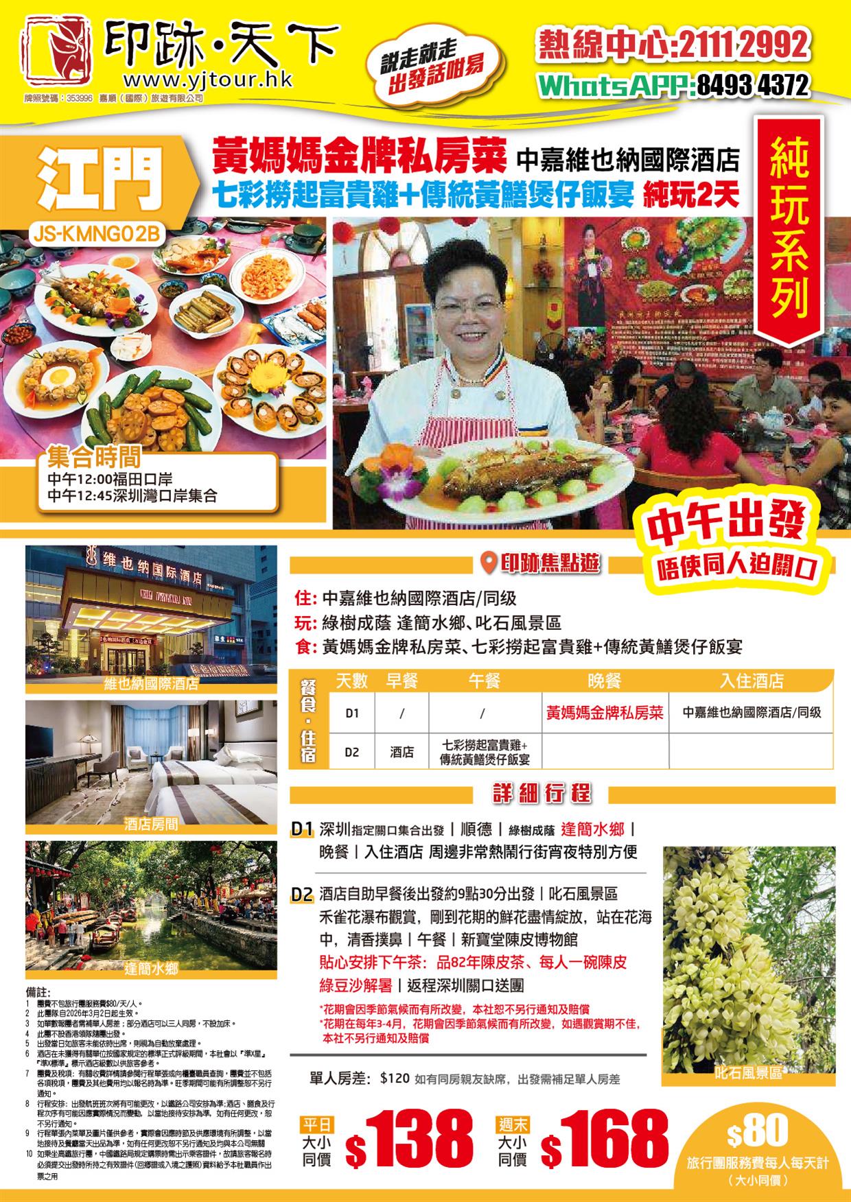 | 03月26日 | 星期四 | $138 | $138 |