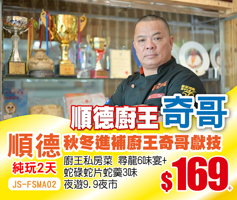 秋冬進補-順德廚王私房菜-尋龍6味宴+ 蛇碌蛇片蛇羹3味,純玩2天,$169+